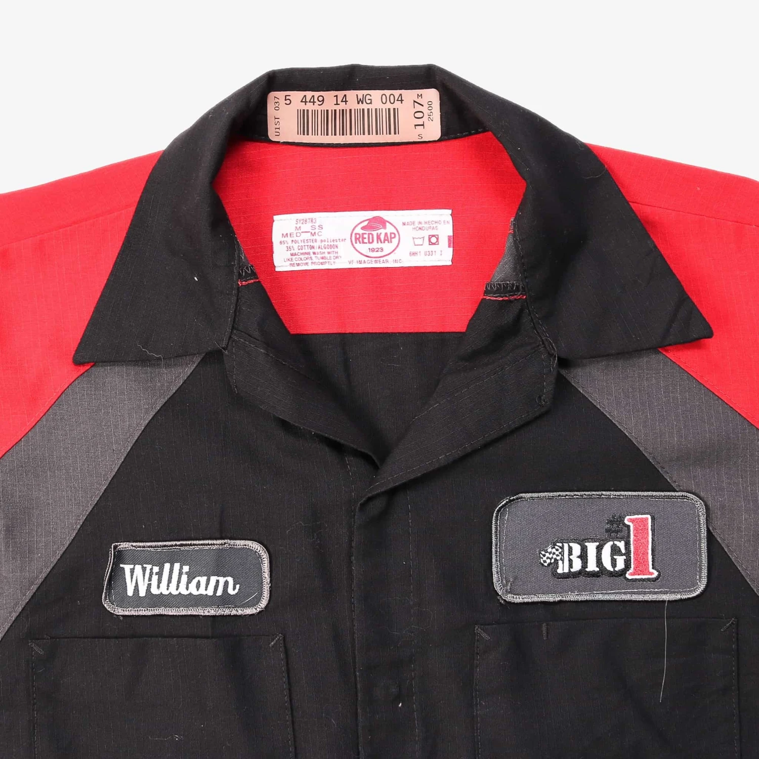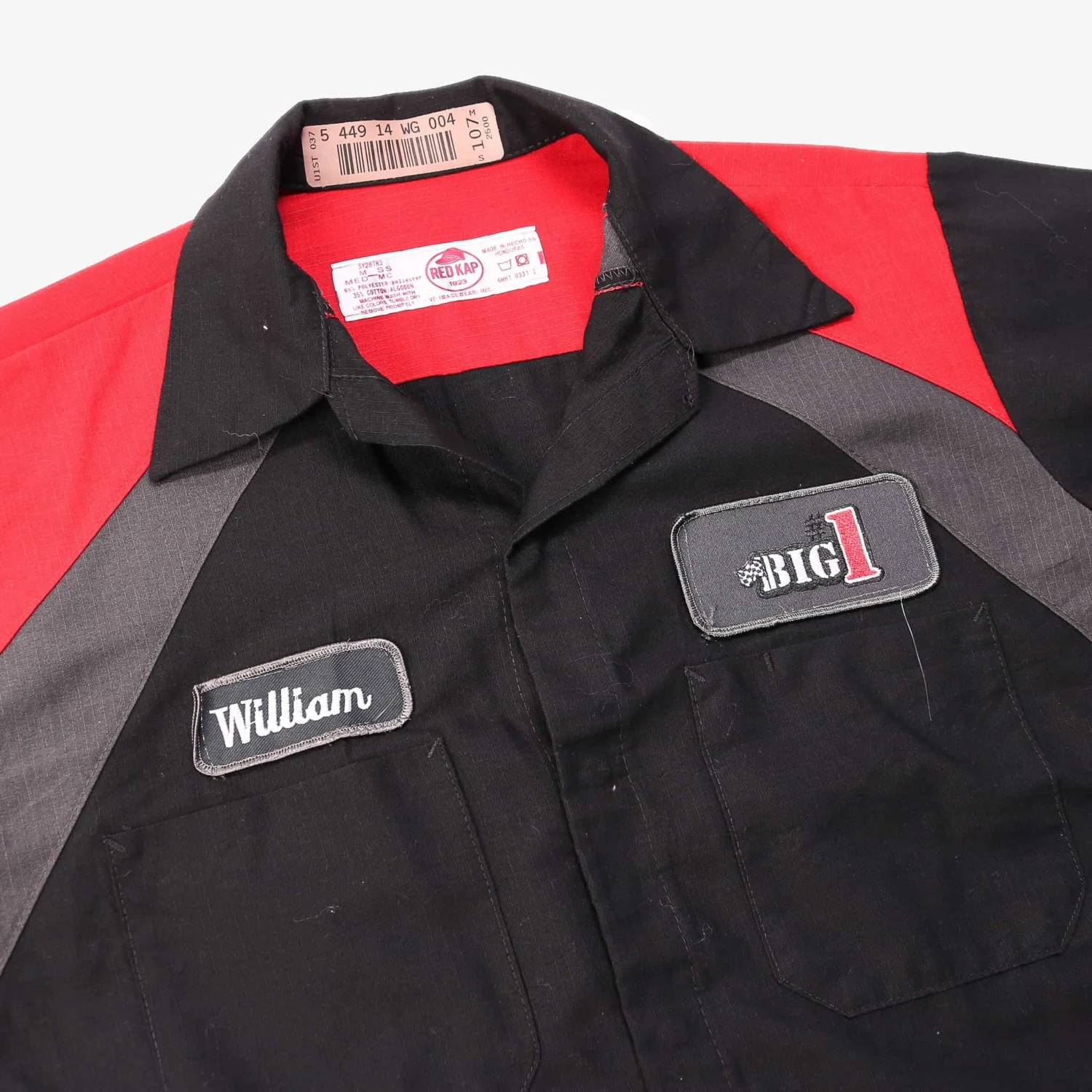 Vintage short-sleeved work shirt with authentic name and business logo patch.Â